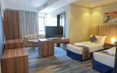 تقدم غرفنا العائلية مساحة واسعة مع جميع وسائل الراحة اللازمة لإقامة مريحة، مما يجعلها مثالية للعائلات التي تبحث عن الاسترخاء.